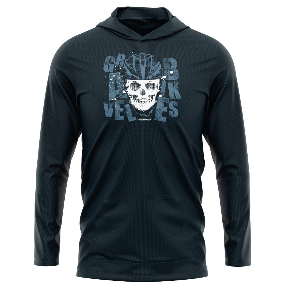 The same great tri-blend shirt you've come to love is now being offered in a long-sleeved hoodie version of our gravel skull design.